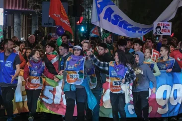 Atzerapenarekin dator, baina hurbil da. Nerbioak azalaratzen. Dena pentsatua dago. Lekukoa bi gurasok emango dute. Haien atzetik eta korrikaren pankartaren aurretik eskolako zuzendaritza.