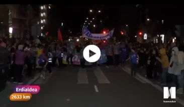 “Zuek zarete euskara, zuek etorkizuna, auzoko eskola, gora errota eskola, gora Errota anitza, gora euskal eskola publikoa, tipi-tapa, tipi-tapa Korrika”
