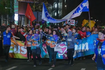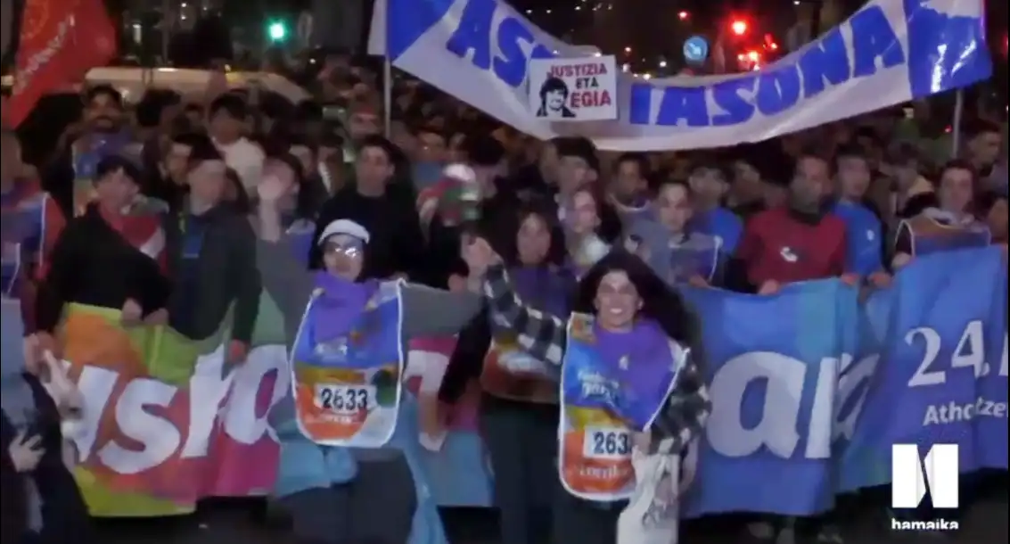 Atzerapenarekin dator, baina hurbil da. Nerbioak azalaratzen. Dena pentsatua dago. Lekukoa bi gurasok emango dute. Haien atzetik eta korrikaren pankartaren aurretik eskolako zuzendaritza.