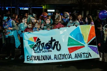 “Zuek zarete euskara, zuek etorkizuna, auzoko eskola, gora errota eskola, gora Errota anitza, gora euskal eskola publikoa, tipi-tapa, tipi-tapa Korrika”